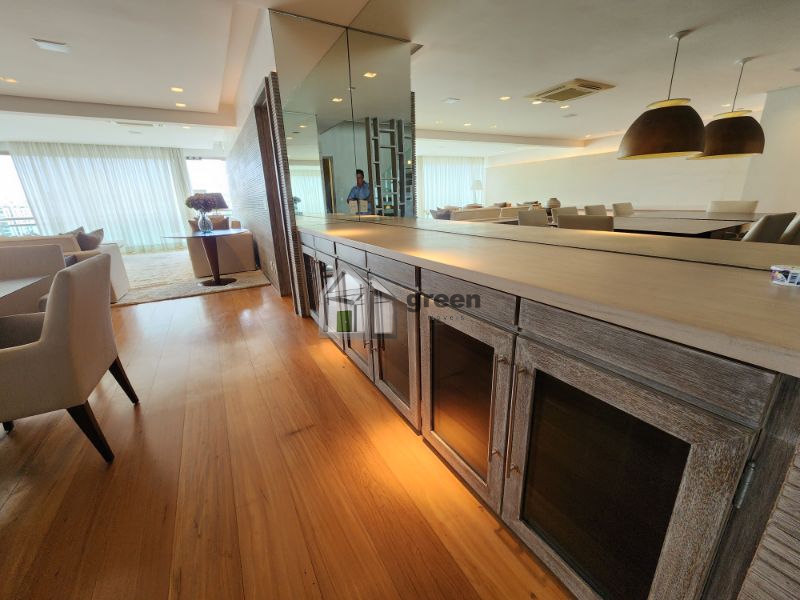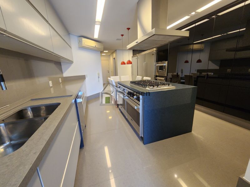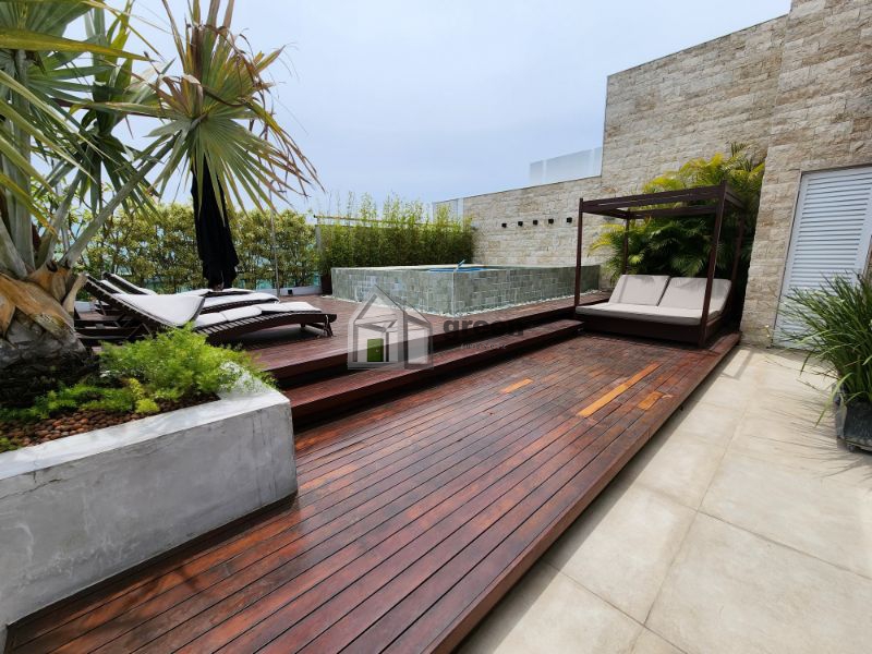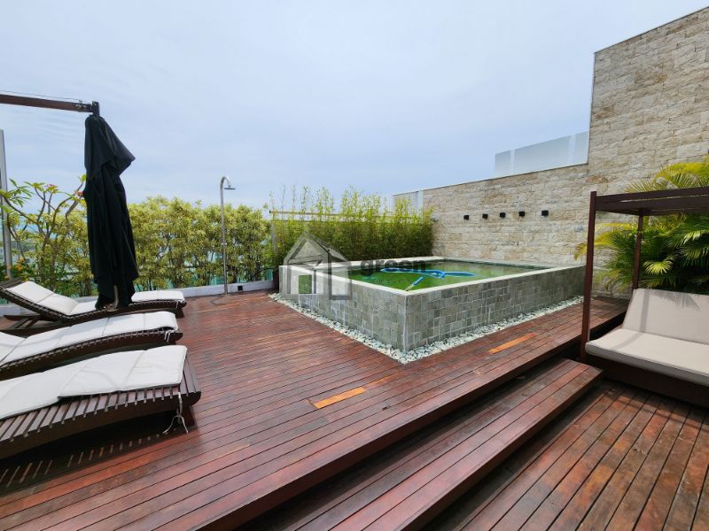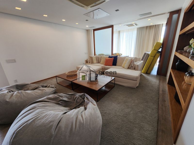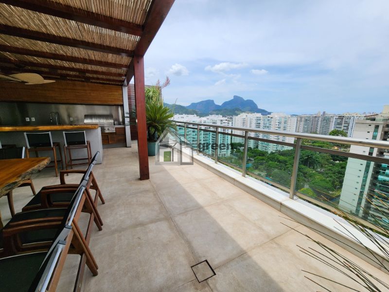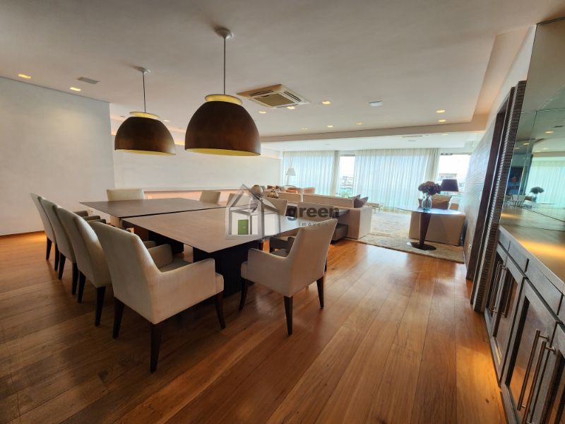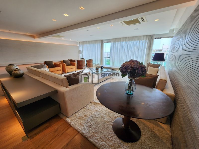 COBERTURA DÚPLEX COM 4 SUÍTES PENÍNSULA SAINT BARTH – Maravilhosa cobertura de 600m² com vista para Pedra da Gávea, Lagoa e parcial mar, composta de: 1º Pavimento com elevador privativo e hall de entrada principal com fechaduras digitais de segurança. Lindo lavabo com peças Deca e Altero Mosaico, sala de jantar com mesa para 10 lugares e ampla sala de estar em vários ambientes. Piso em madeira de demolição (peroba), paredes em pedra natural e madeira, bancada em travertino. Adega com 3 temperaturas. Todo com automação e câmeras de segurança, ar condicionado cassete em todos os ambientes. Corredor com amplos armários/despensa. 4 suítes com piso em madeira de demolição (peroba), armários completos, ar condicionado cassete e sprint em todos os ambientes, sendo a master com enorme closet, banheiros com bancadas em silestone, chuveiros duplos e pias duplas. Copa/cozinha com bancada central, fogão, 3 enormes geladeiras Viking, máquina de gelo, gavetas refrigeradas, 2 fornos, cooktop e mesa para refeições. Despensa e dependências completas. Pavimento superior com lavabo, sala de televisão com home theater completo, tv de 50 polegadas, telão e projetor retráteis. Escritório anexo com vista para piscina. Todos os ambientes com ar condicionado. Ambiente externo com cozinha gourmet completa com enorme pia, churrasqueira a gás e fogão Viking. Bancada/bar com freezer, geladeira e máquina de gelo. Cozinha de apoio com pia e geladeira. Mesa espaço gourmet coberta por pergolado em madeira com enorme e linda mesa em madeira de demolição para 14 pessoas. Jardins planejados, lounge convivência com lareira de chão central a gás, deck superior com piscina e solarium. Sauna a vapor e vestiário completo. Toda a cobertura foi planejada por arquiteto famoso, móveis das melhores marcas em todos os ambientes, sistema de som, automação e câmeras de segurança compõem a venda deste singular imóvel. Porteira fechada. Marque uma visita conosco e surpreenda-se!