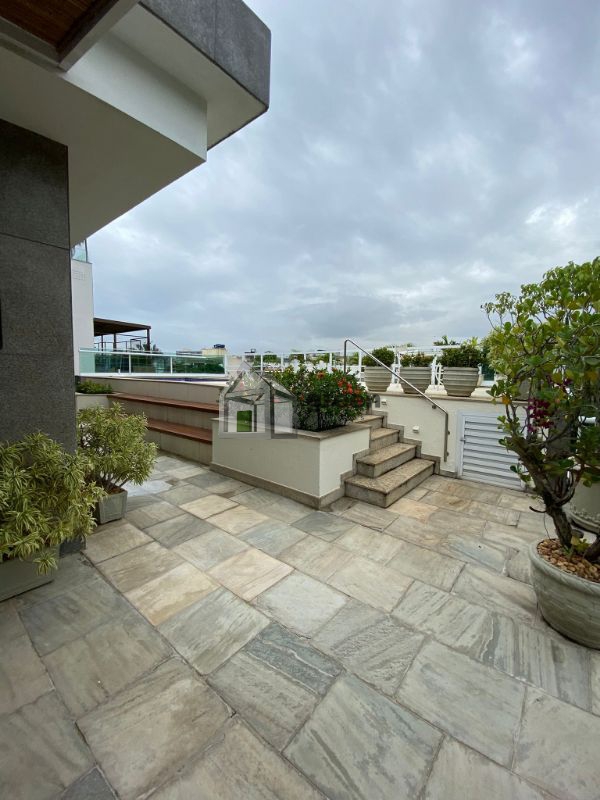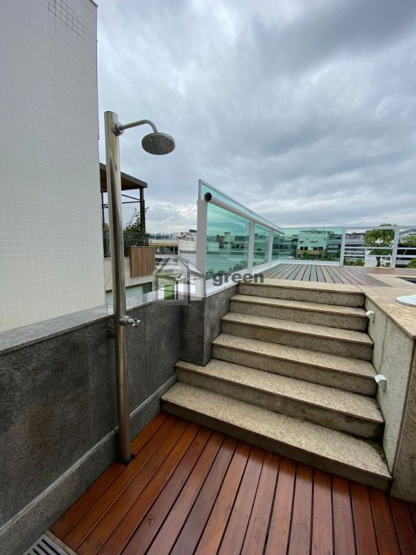 Jardim Oceânico - Maravilhosa Cobertura Linear com 558m², 04 suítes com armários embutidos, box blindex e pias em granito, master com hidro, varandão, área externa com piscina com hidro, espaço Goumert com churrasqueira, copa-cozinha com armários embutidos, lavanderia, área de serviço, dependências. No segundo piso, 04 vagas de garagem.